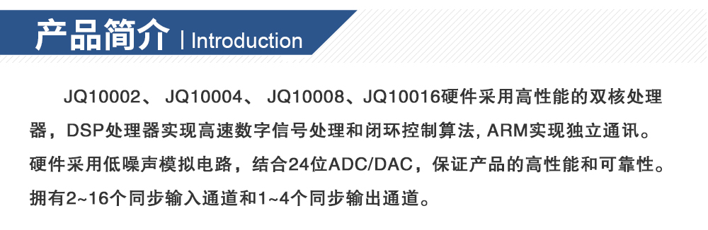 用途: JQ10002、 JQ10004、 JQ10008、JQ10016硬件采用高性能的雙核處理器,DSP處理器實現(xiàn)高速數(shù)字信號處理和閉環(huán)控制算法, ARM實現(xiàn)獨立通訊。